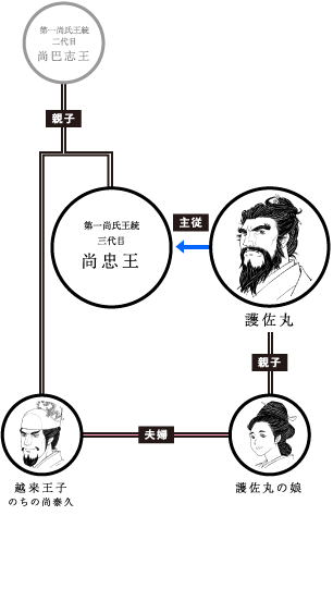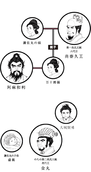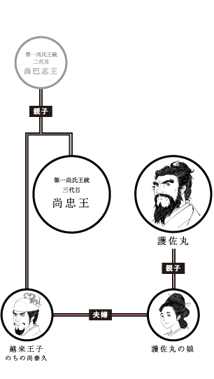 「護佐丸・阿麻和利の乱」の後、尚泰久王が逝去し、尚徳(しょうとく)が琉球王国の7代目の王に即位しました。尚徳王は、暴君で、琉球王国の情勢は悪くなりました。その尚徳王が逝去した後、琉球王国の立て直しを行うことになり、領地西原内間に蟄居していた金丸が王位を継承し、尚円王となりました。尚円王は護佐丸の三男である盛親が糸満の国吉に逃れ、生きていることを知ると、盛親を首里王府へと迎え入れました。
