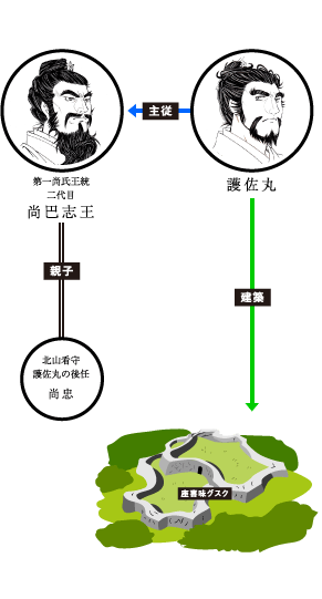 護佐丸は琉球王国を成立させた尚巴志(しょうはし)に仕え、琉球王国統一に向けて、尚巴志と共に戦った「北山討伐」で武功をあげました。その後、今帰仁(にきじん)グスク、座喜味グスク、中城(なかぐすく)グスク、と3つのグスクの城主となります。「築城の天才」と謳われ、その晩年を迎えた中城グスクの遺跡では、彼の築城技術のレベルの高さをうかがい知ることができます。6代の王に仕えたことでも知られ、その忠義心の厚さに人柄を偲ぶことができます。