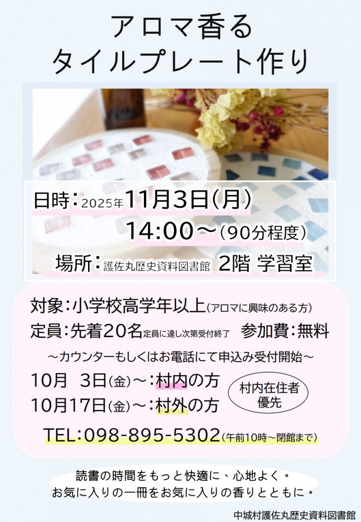 図書館では両日にちなみオリジナルのタイルプレート工作を実施します。