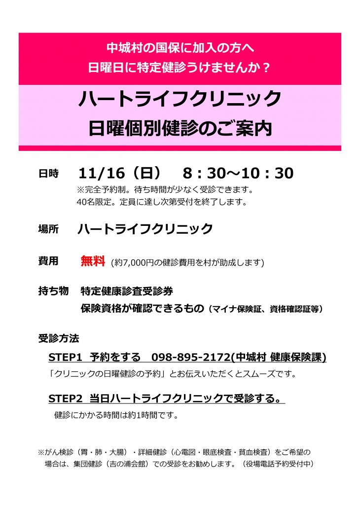 休日にハートライフクリニックで特定健診を受けませんか?