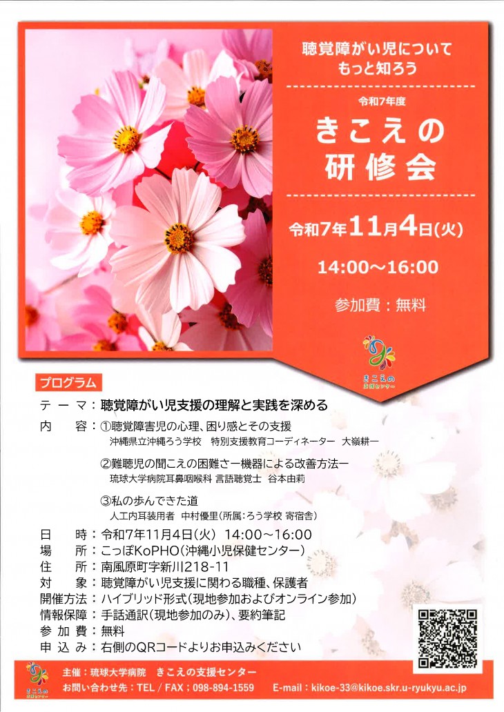 きこえの支援センター主催の、令和7年度 きこえの研修会が開催されます。