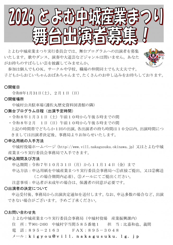 2026とよむ中城産業まつり舞台出演者募集のお知らせ