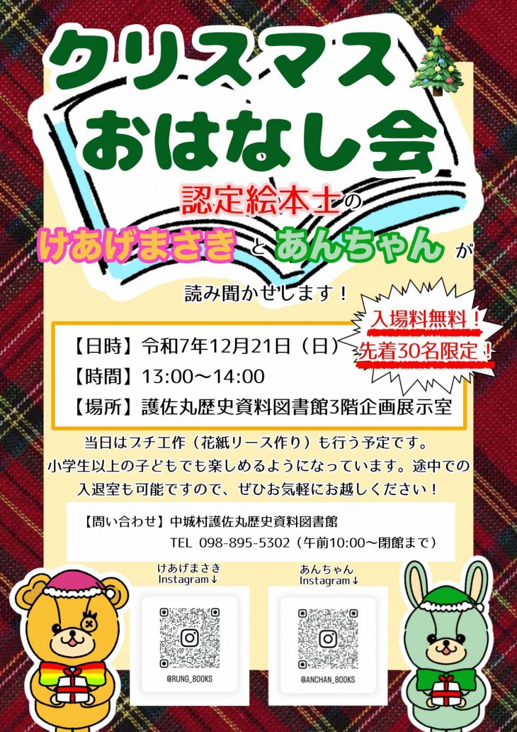 クリスマスに関する絵本の読み聞かせの他、歌や花紙リースのプチ工作など盛りだくさんのプログラムとなっています!!
