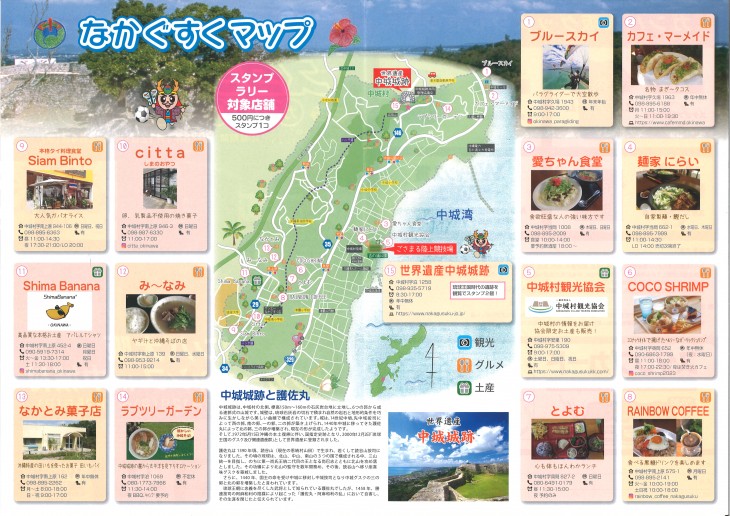 スタンプラリーご参加問合せ先:一般社団法人 中城村観光協会 TEL 098-975-5309