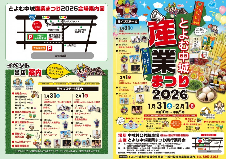 2026とよむ中城産業まつりは、令和8年1月31日(土)、2月1日(日)に中城村公共駐車場において開催します。