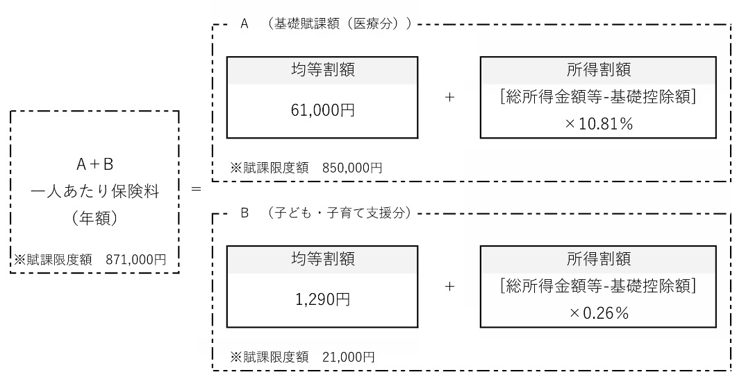 保険料は被保険者全員が等しく負担する「均等割額」と被保険者の前年の所得に応じて負担する「所得割額」の合計になります。均等割額と所得割額は広域連合ごとに決められています。