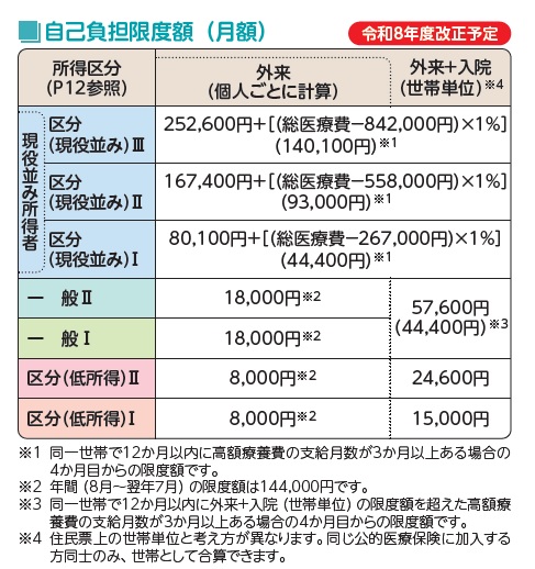 病院などで治療に要した医療費の窓口負担は、所得区分によって異なります。