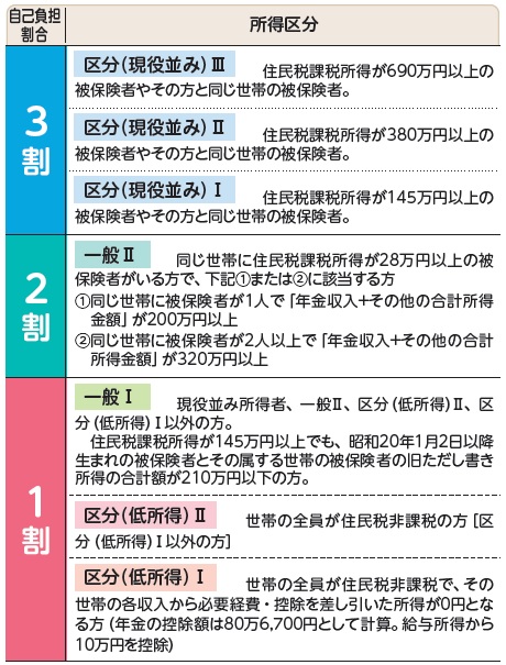 ・病院などで治療に要した医療費の窓口負担は、所得区分によって異なります。