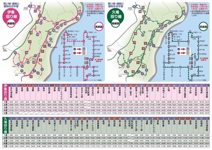 再開時刻等については、直接バス事業者か役場企画課へお問い合わせください。